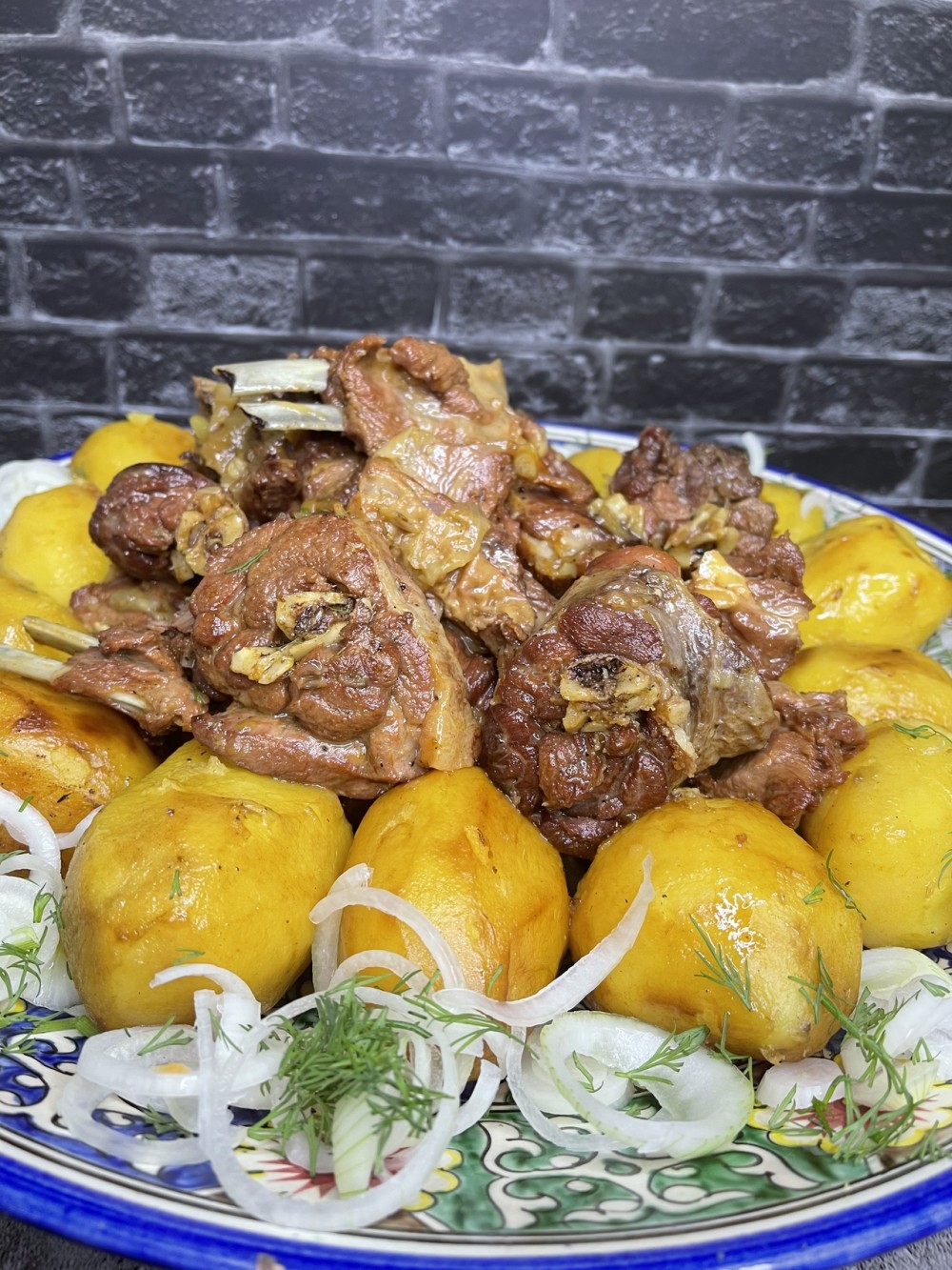 Мясо ягнёнка приготовленное в казане по-узбекски с картофелем.