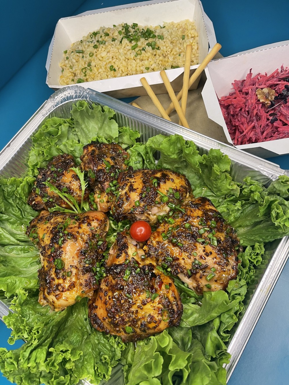 ? Медовые куриные бёдра в Иранском стиле. ? Булгур. ? Салат из свеклы и моркови. ? Крекер. ??? 4-6 персоны
