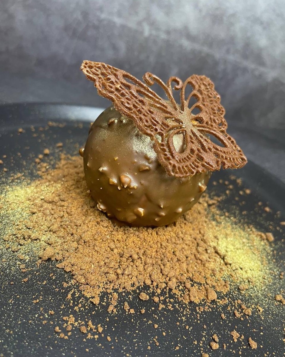 Нежный сливочный муссовый десерт на основе фундука в шоколадной глазури , начинка из фундучного пралине (карамель), шоколадного бисквита Джоконда на основе миндальной муки. Вес 130гр цена 1200тг
