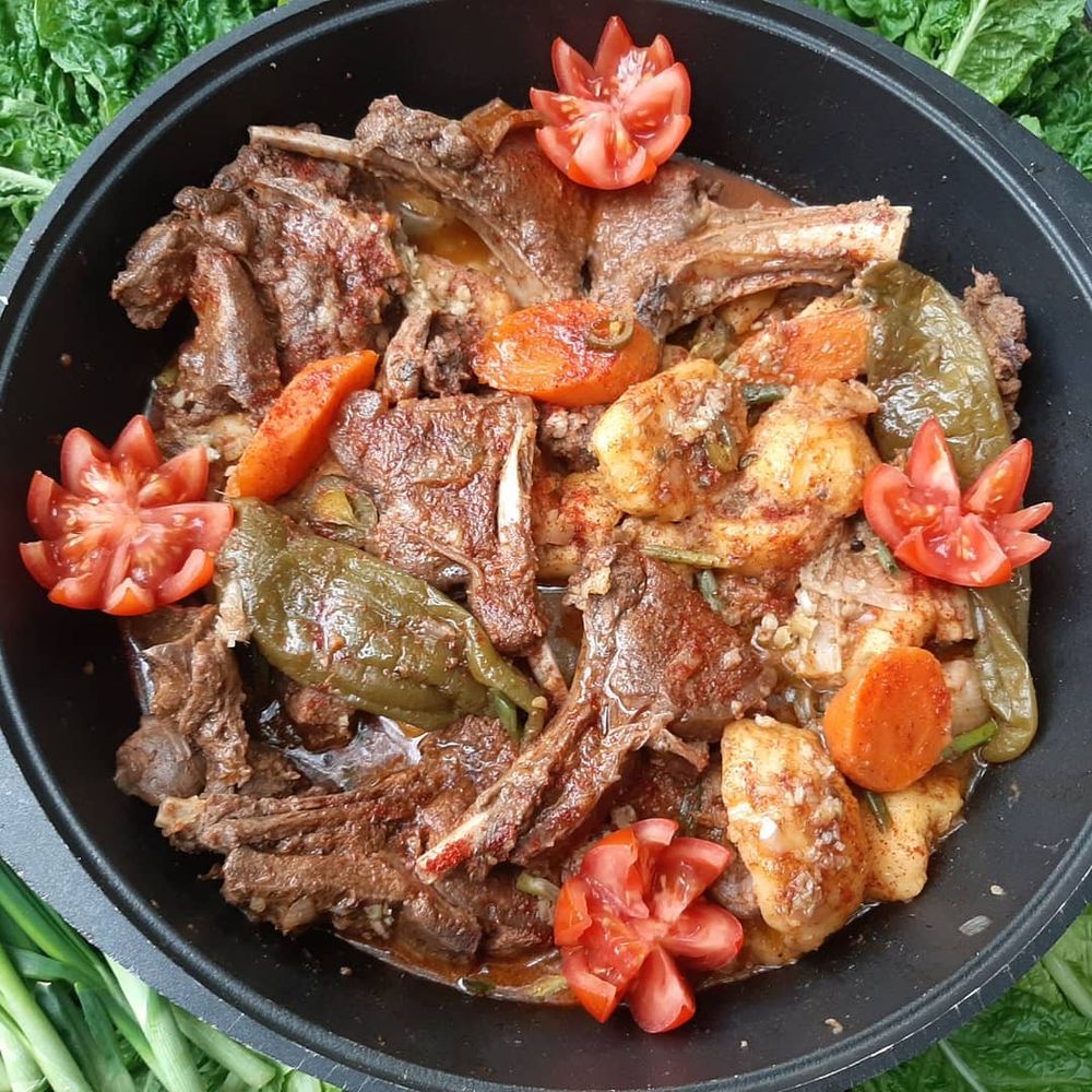 Мясо марала, картофель, лук. Приготовлено по Алтайскому рецепту с кедровыми орешками, специями.