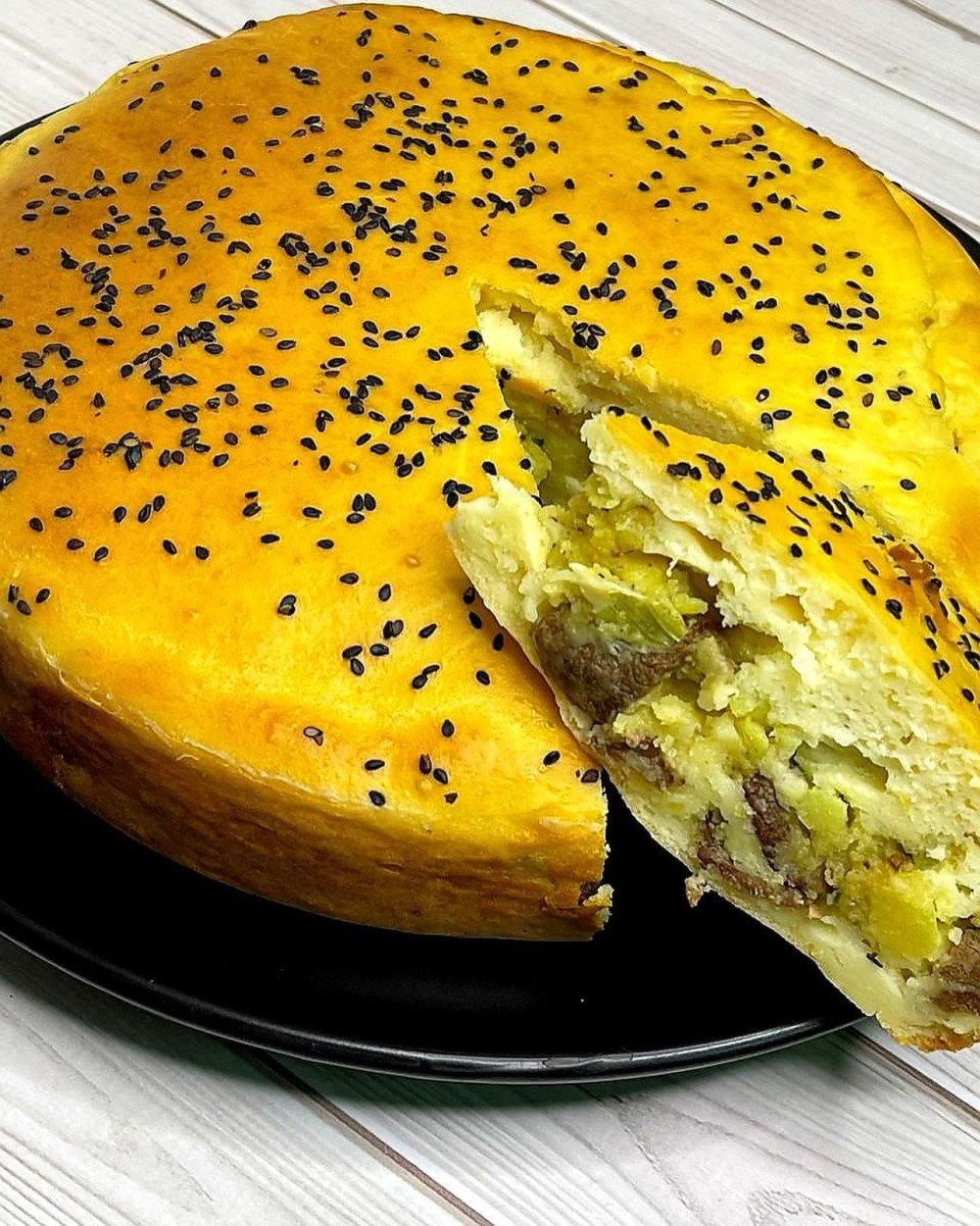 Пирог с мясом и капустой 22 см. На 10 персон.