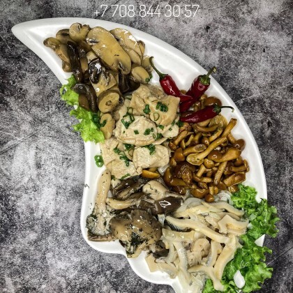 Огурчики бочковые, капуста квашенная, маринованные томаты, маринованные шампиньоны, маринованный Болгарский перчик. Всё исключено собственного производства!