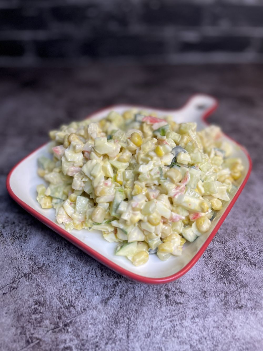 Крабовые палочки, яйцо, свежий огурец, кукуруза. ( без риса!)
