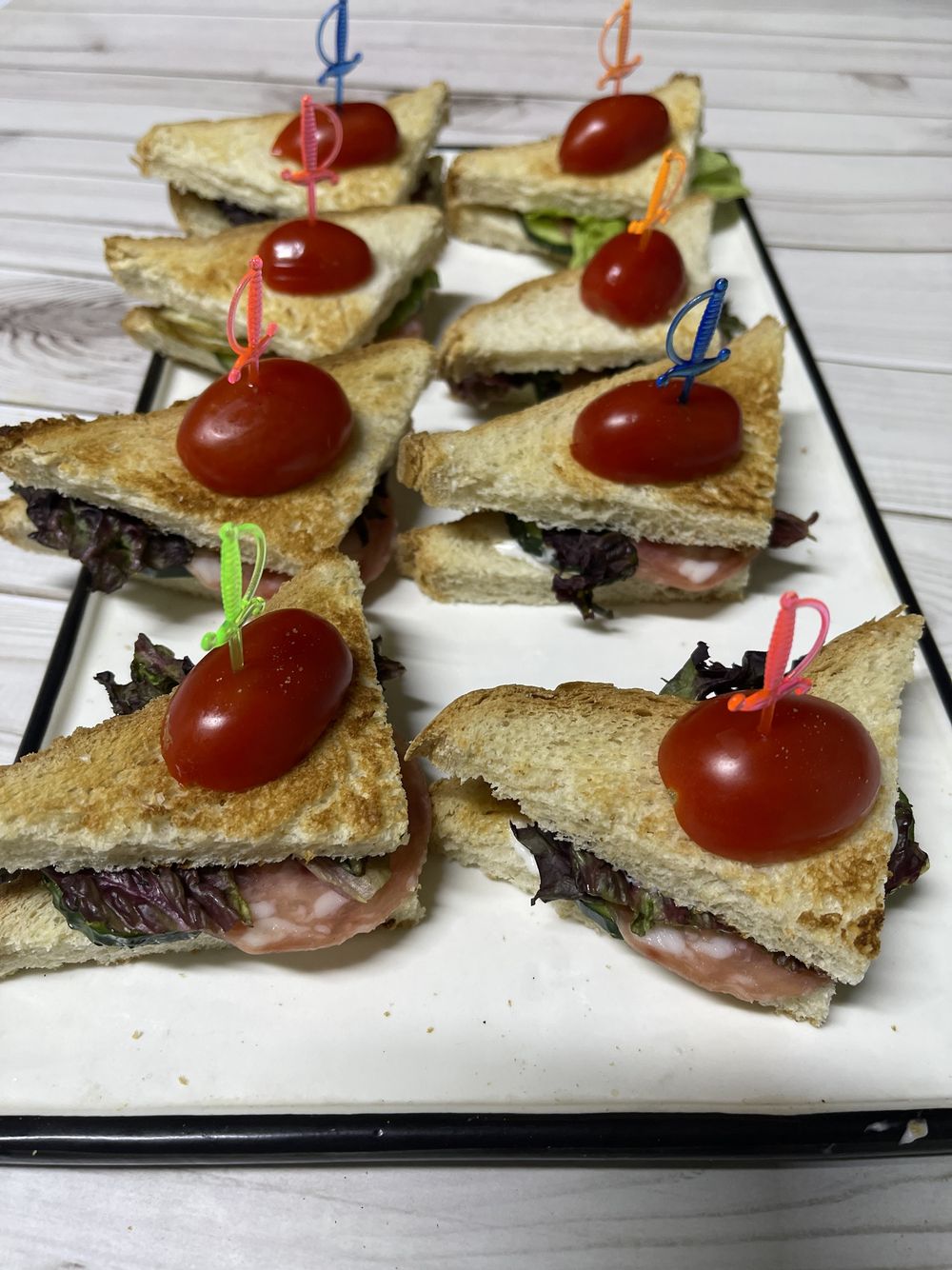 Сендвич фуршетный с копчёной колбасой чёризза. 16 шт.