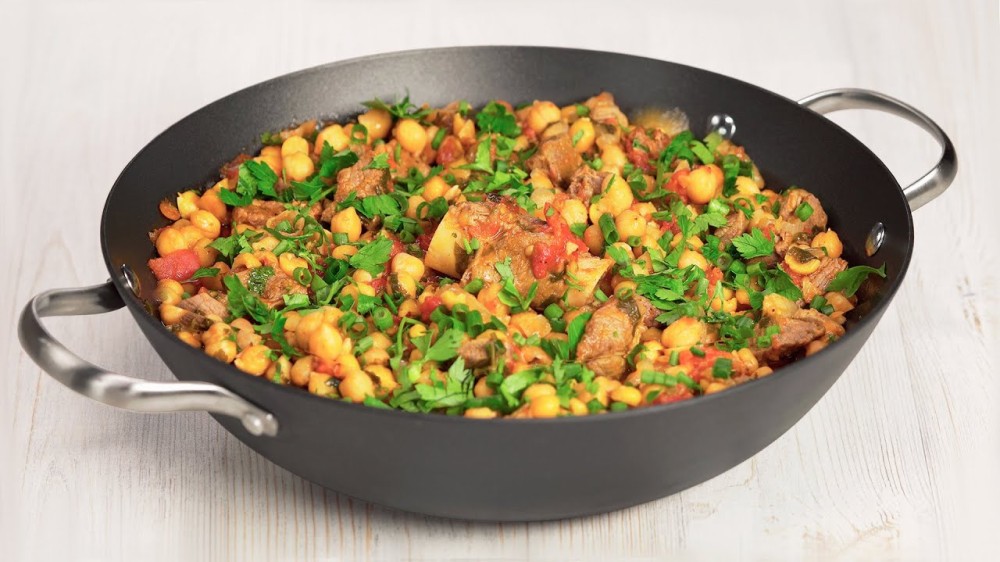 Нежное мясо телятины тушеное с овощами и нутом. Традиционное узбекское блюдо. Плов из нута на 10 пенсон.