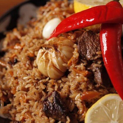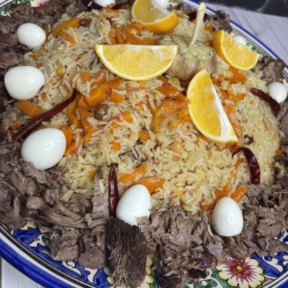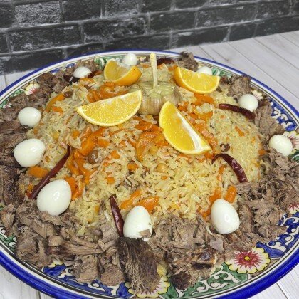 6 кг. Ташкентского плова. Узбекский плов, приготовлегный на смеси подсолнечного и хлопкового масел, из риса сорта Лазер, говядины, моркови и нута.