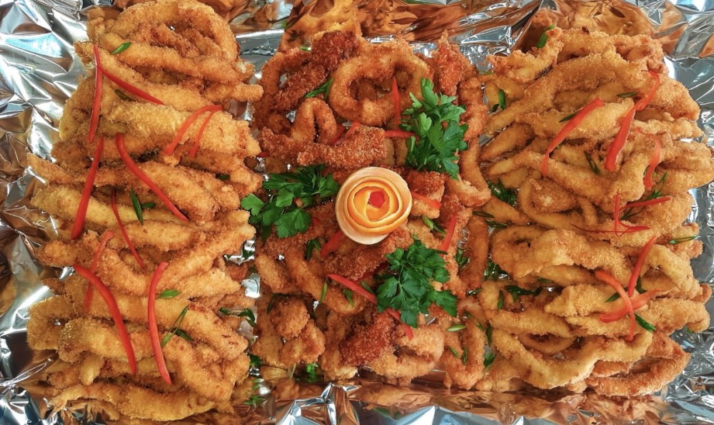 ✅ Куриные нагетсы. ✅ Кольца кальмара. ✅ Нагетсы из филе судака. ✅ Соус тартар. ✅ Кетчуп. ✅ Соус свит чили. На 10 персон.